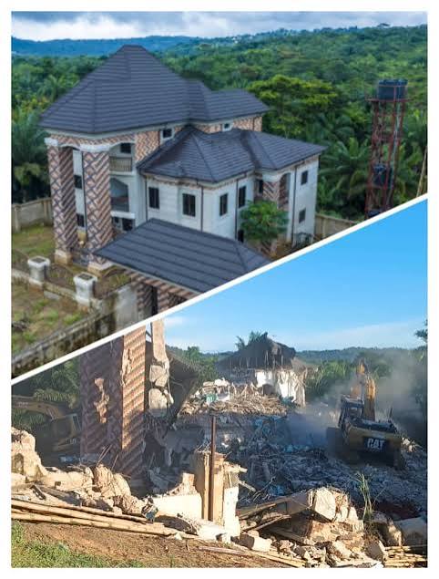 insecurity in the state. He emphasized that the demolition was in line with Enugu State’s laws, which mandate the destruction of properties used for criminal activities.