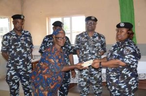 The state commissioner of police, CP Betty Otimenyin, presented the cheque to